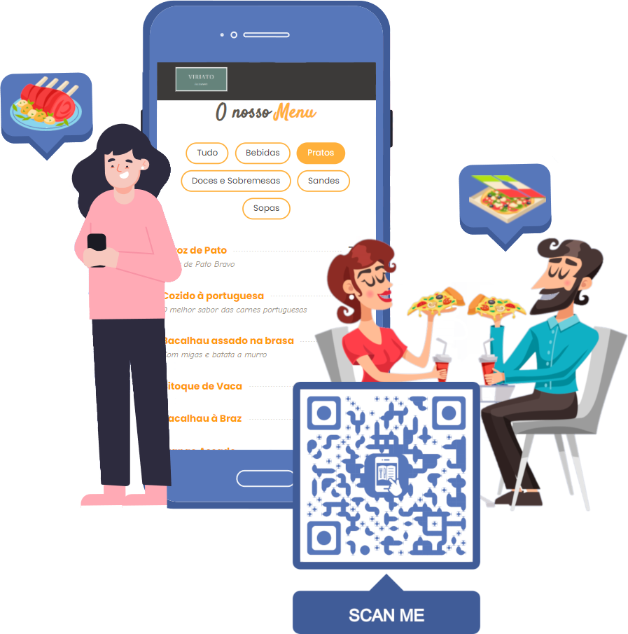 Para disponibilizar o Menu, sugerimos colocar um código QR com o endereço na porta, numa montra ou mesmo no exterior, de forma a facilitar a consulta.